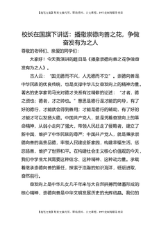 校长在国旗下讲话:播撒崇德向善之花,争做奋发有为之人.doc