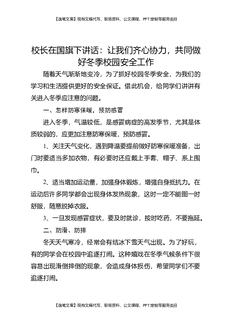 校长在国旗下讲话:让我们齐心协力,共同做好冬季校园安全工作.docx