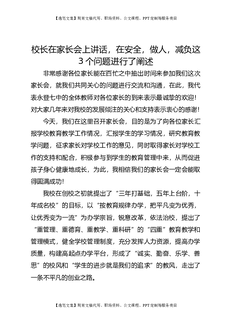 校长在家长会上讲话,在安全,做人,减负这3个问题进行了阐述.doc