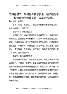 双减背景下,如何提升教学质量,校长结合学校教育教学管理实际,分享5点做法.doc