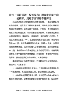 徒步“远足活动”校长发言:用脚步丈量生命的精彩,用意志谱写青春的辉煌.docx