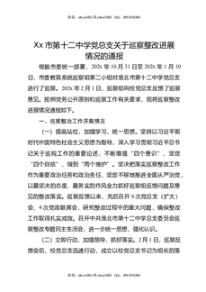 XX市第十二中学党总支关于巡察整改进展情况的通报.docx