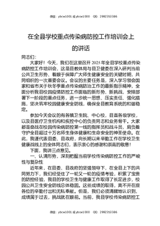在全县学校重点传染病防控工作培训会上的讲话.docx