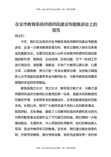 在全市教育系统师德师风建设专题推进会上的报告.docx