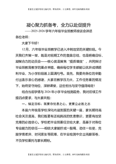 2025-2026学年六年级毕业班教师座谈会讲话:凝心聚力抓备考,全力以赴促提升.doc