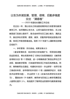 2025年度校长履职工作总结:以生为本谋发展,管理、德育、后勤多维度交出“满意卷”.docx