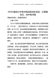 2026届初三中考冲刺动员校长讲话:以青春为刃,向中考冲锋.doc