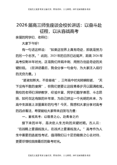 2026届高三师生座谈会校长讲话:以奋斗赴征程,以从容战高考.doc