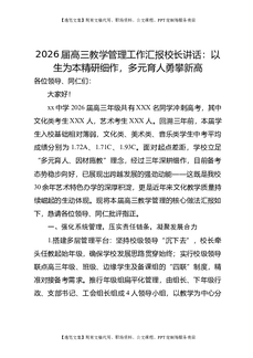 2026届高三教学管理工作汇报校长讲话:以生为本精研细作,多元育人勇攀新高.doc