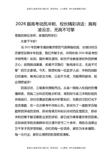 2026届高考动员冲刺,校长精彩讲话:胸有凌云志,无高不可攀.doc