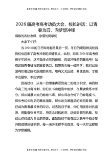 2026届高考高考动员大会,校长讲话:以青春为刃,向梦想冲锋.doc