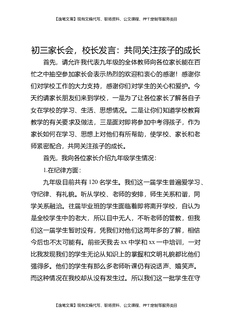 初三家长会,校长发言:共同关注孩子的成长.docx