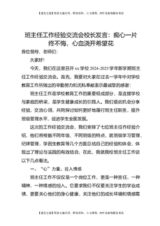 班主任工作经验交流会校长发言:痴心一片终不悔,心血浇开希望花.docx