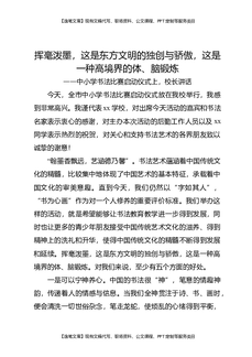 中小学书法比赛启动仪式上,校长讲话:挥毫泼墨,这是东方文明的独创与骄傲,这是一种高境界的体、脑锻炼.docx