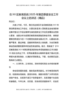 在XX区教育系统2025年第四季度安全工作会议上的讲话(精品).doc