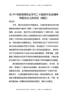 在XX市教育局传达学习二十届四中全会精神专题会议上的讲话(精品).doc