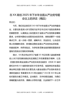 在XX高校2025年下半年全面从严治党专题会议上的讲话(精品).doc