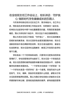 在全校班主任工作会议上,校长讲话:守护良心做新时代学生健康成长的引路人.docx