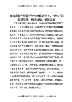 在教育教学管理经验交流现场会上,校长讲话:智慧管理,精细耕耘,低进优出.docx