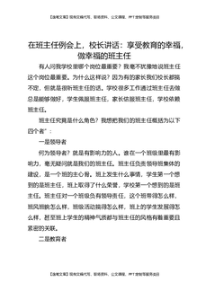 在班主任例会上,校长讲话:享受教育的幸福,做幸福的班主任.docx