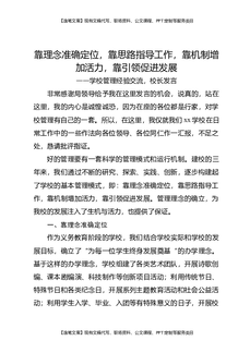 学校管理经验交流,校长发言:靠理念准确定位,靠思路指导工作,靠机制增加活力,靠引领促进发展.docx