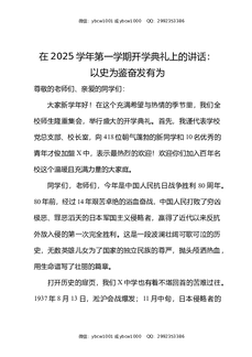 在2025学年第一学期开学典礼上的讲话:以史为鉴,奋发有为.docx