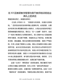 在XX区教研教学管理与骨干教师培训班结业典礼上的讲话.docx