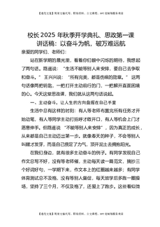 校长2025年秋季开学典礼、思政第一课讲话稿:以奋斗为帆,破万难远航.docx