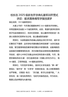 校长在2025级新生开学典礼暨军训开营式讲话:毅求真铸魂笃学强技逐梦.docx