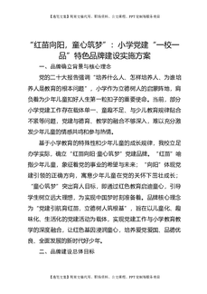“红苗向阳,童心筑梦”:小学党建“一校一品”特色品牌建设实施方案.doc
