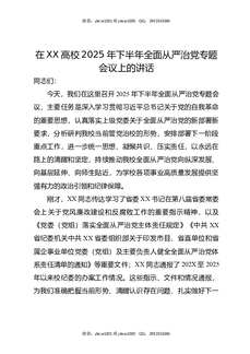 在XX高校2025年下半年全面从严治党专题会议上的讲话.docx