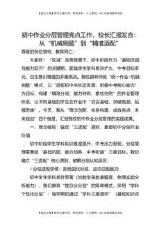 初中作业分层管理亮点工作,校长汇报发言:从“机械刷题”到“精准适配”.docx