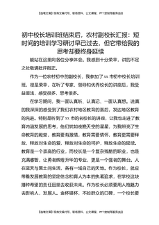初中校长培训班结束后,农村副校长汇报:短时间的培训学习研讨早已过去,但它带给我的思考却要终身延续.docx