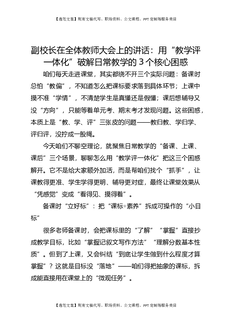 副校长在全体教师大会上的讲话:用“教学评一体化”破解日常教学的3个核心困惑.docx