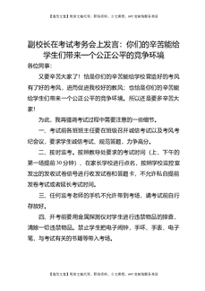 副校长在考试考务会上发言:你们的辛苦能给学生们带来一个公正公平的竞争环境.doc