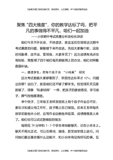 小学期中考试质量分析会校长讲话:聚焦“四大维度”,你的教学达标了吗,把平凡的事做得不平凡,咱们一起加油.docx