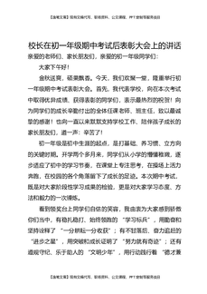 校长在初一年级期中考试后表彰大会上的讲话.docx