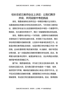 校长在初三教师会议上讲话:让我们携手并肩,共同迎接中考的挑战.docx