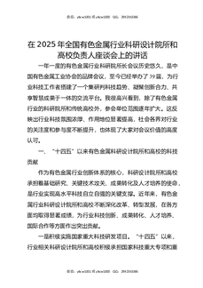 在2025年全国有色金属行业科研设计院所和高校负责人座谈会上的讲话.docx