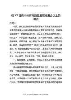 在XX县高中教育高质量发展推进会议上的讲话.docx