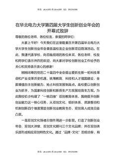 在XX大学第四届大学生创新创业年会的开幕式致辞.docx