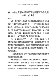 在XX市教育系统师德师风专项整治工作视频会议上的讲话.docx