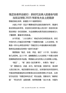 恪正协衷怀远砺行:新时代法律人的使命与担当在法学院2025年新生大会上的致辞.docx