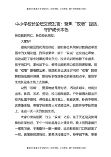 中小学校长论坛交流发言:聚焦“双增”提质,守护成长本色.doc