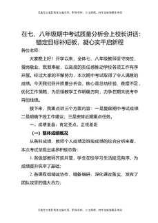在七、八年级期中考试质量分析会上校长讲话:锚定目标补短板,凝心实干启新程.doc