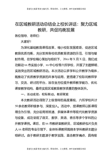 在区域教研活动总结会上校长讲话:聚力区域教研,共促均衡发展.doc