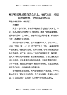 在学校管理经验交流会议上,校长发言:规范管理强根基,文化铸魂提品味.doc