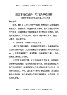 在期中教学工作总结大会上校长讲话:复盘半程促提升,笃行实干启新篇.doc