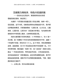 在校长论坛活动中,寄宿制学校校长讲话:五维聚力育桃李,特色兴校谱新篇.doc