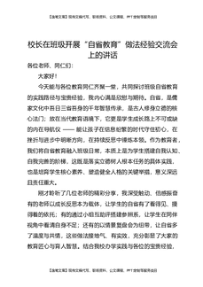 校长在班级开展“自省教育”做法经验交流会上的讲话.docx